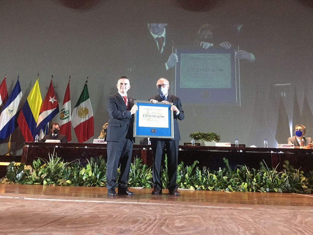 El emotivo momento ha estado liderado por el Secretario General de la UIM, Federico A. Castillo Blanco, quien ha entregado al Presidente Municipal de Orizaba, Igor Rojí, el galardón que reconoce el aporte de la ciudad y su gente al municipalismo de Iberoamérica, al ser anfitriones de este magno encuentro municipalista.