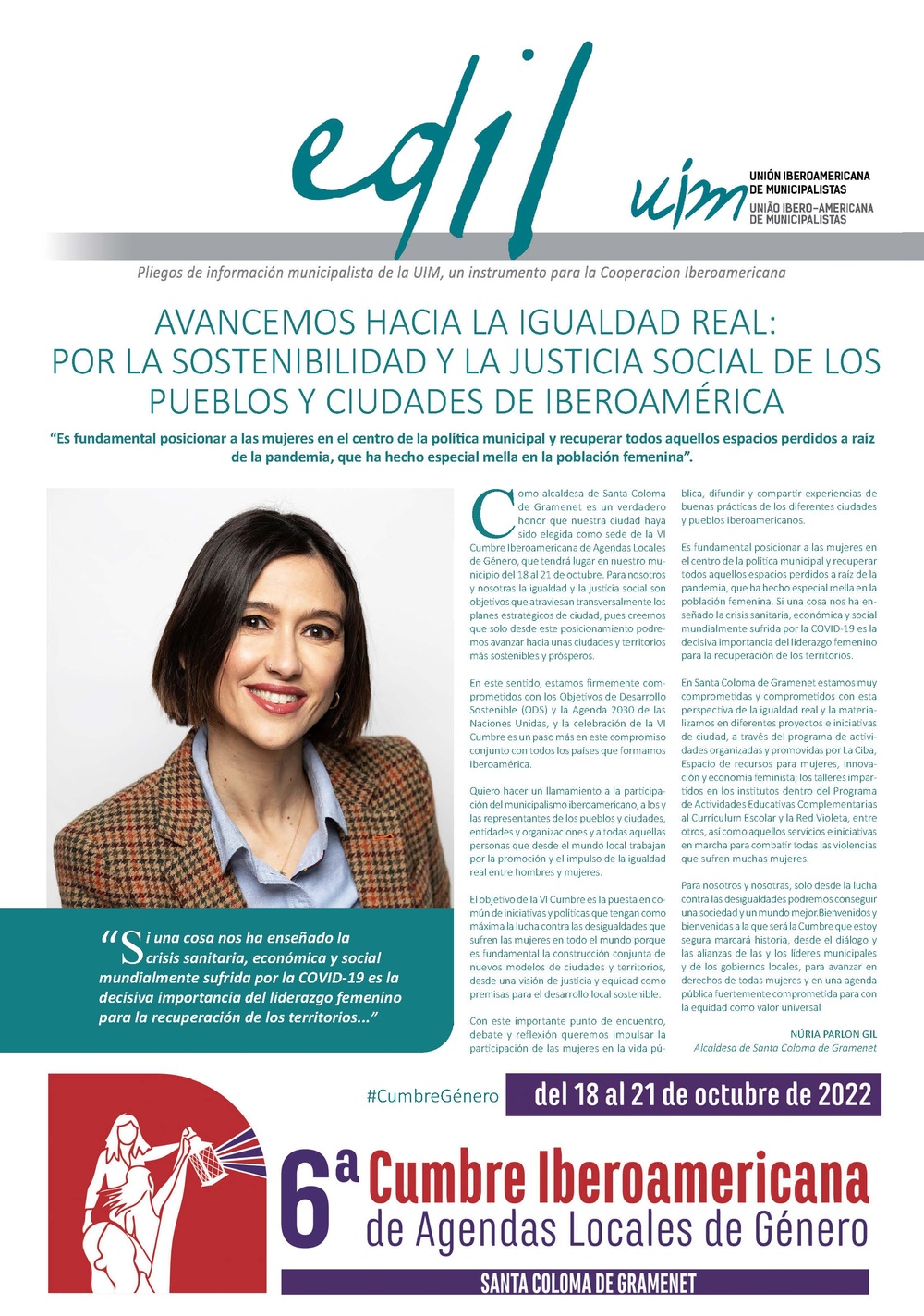 En esta edición destacamos la realización de la próxima Cumbre iberoamericana de Agendas Locales de Género que se desarrollará los días 18 al 21 de octubre en Santa Coloma de Gramenet, Barcelona, España.