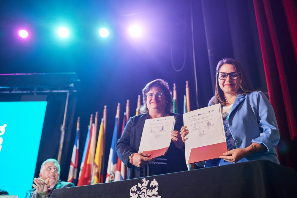 Y se firmó el Memorándum de Entendimiento entre la Plataforma Articulada para el Desarrollo Integral Territorial de Cuba, representada por Aizel Llanes Fernández, Directora del Instituto Nacional de Investigaciones Económicas y Coordinadora Nacional de PADIT y la Unión Iberoamericana de Municipalistas.