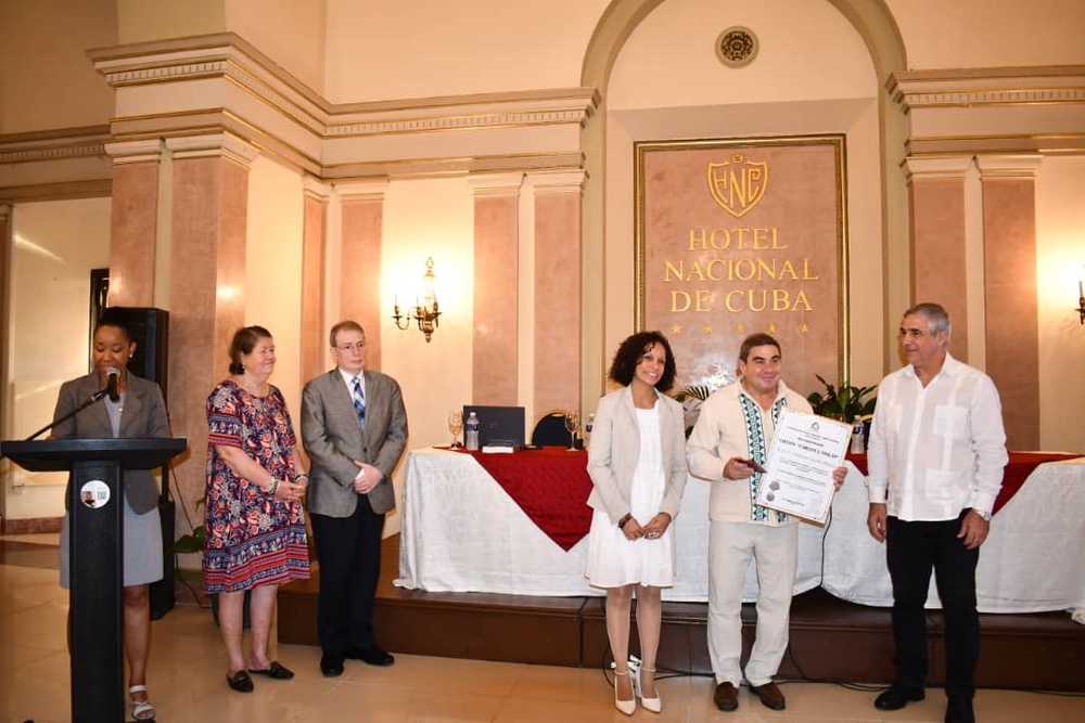 El Dr. Federico Castillo Blanco, Secretario General de la UIM, recibe el reconocimiento Carlos J. Finlay en La Habana, Cuba. El reconocimiento, que rinde homenaje a los méritos y aportes al desarrollo de las ciencias, ha sido entregado por el Ministro de Ciencia y Tecnología de Cuba, tras Decreto Presidencial