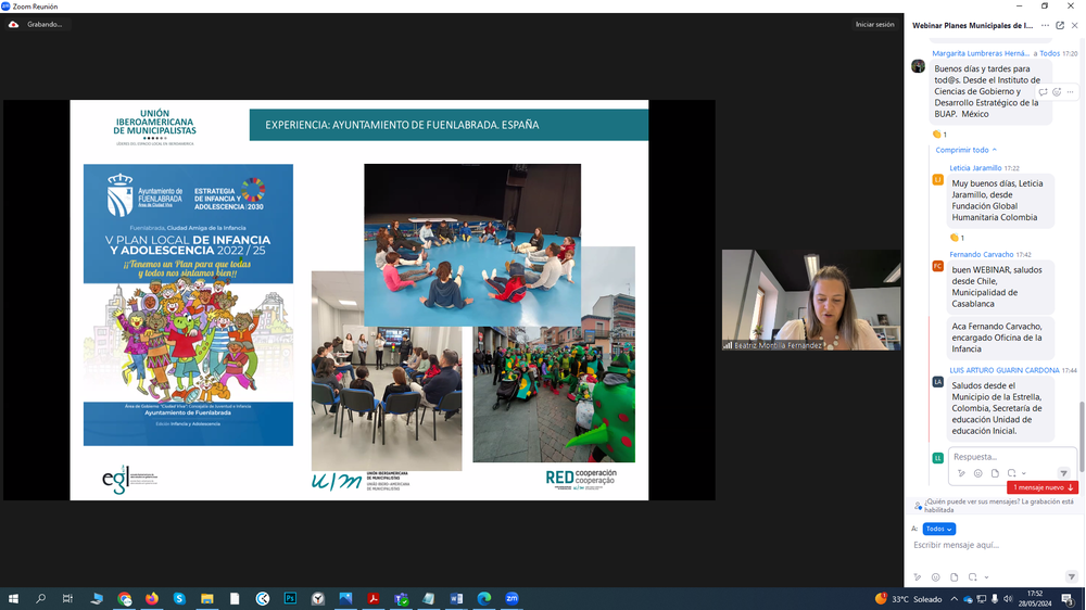 e ha seguido el trabajo en la temática municipios e infancias y la importante tarea que en RED se está logrando a través de la labor de la Red Iberoamericana de Municipios por las Infancias (IberInfancias), agradeciendo por ello a la coordinadora técnica de este trabajo, María Auxiliadora Naranjo Tovar, que tomó la palabra para enmarcar la videoconferencia.