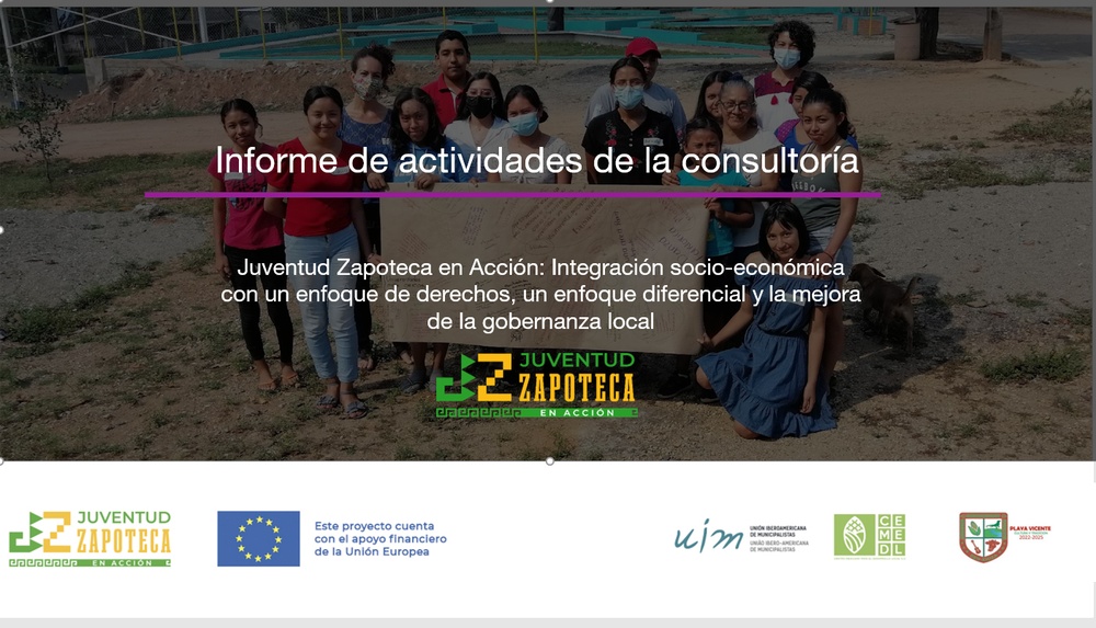 El Proyecto "Juventud zapoteca en acción: Integración socio-económica con un enfoque de derechos, un enfoque diferencial y la mejora de la gobernanza local", es Financiado por la Unión Europea, el proyecto es liderado por la Unión Iberoamericana de Municipalistas, junto a sus socios locales el Centro Mexicano para el Desarrollo Local y la Municipalidad de Playa Vicente.