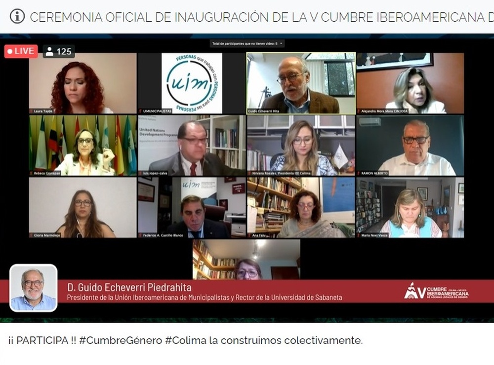 Durante la inauguración, que reunió a autoridades y participantes en la sala virtual Griselda Álvarez Ponce de León, primera mujer electa Gobernadora de un Estado en la historia de México, el Gobernador del Estado de Colima, José Ignacio Peralta Sánchez, el Presidente de la Unión Iberoamericana de Municipalistas y Rector de la Universidad de Sabaneta, Guido Echeverri Piedrahita, la Secretaria General de la Secretaría General Iberoamericana, Rebeca Grynspan Mayufis, el Director Regional para América Latina y el Caribe del Programa de Naciones Unidas para el Desarrollo, Luis Felipe López Calva, la Directora Regional para las Américas y el Caribe ONU Mujeres, María Noel Vaeza y la Secretaria Ejecutiva de la Comisión Interamericana de la Mujer de la Organización de Estados Americanos, Alejandra Mora Mora.