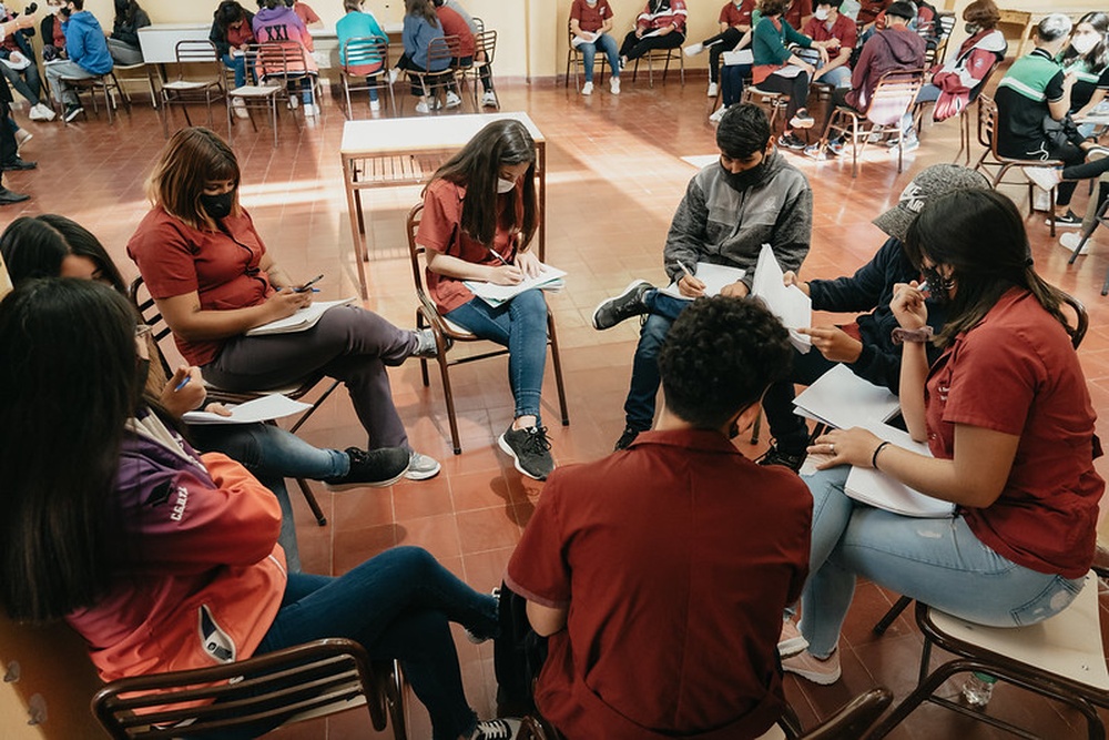 Estudiantes de los municipios que forman parte del proceso de planificación estratégica de los departamentos de Albardón, Caucete y San Martín, en la provincia de San Juan (Argentina) participan de una dinámica colectiva para la construcción de la visión departamental, que sume nuevas voces y propuestas a la visión de futuro de su territorio.