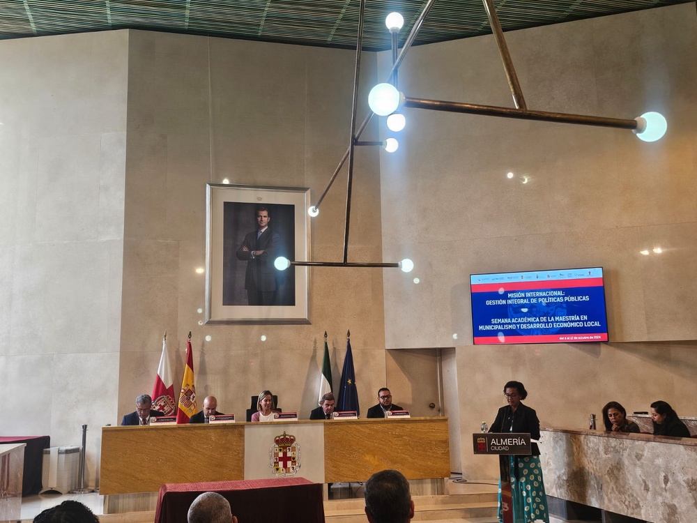 Durante el transcurso de la Misión Técnica, la alcaldesa de Almería, Dª. María del Mar Vázquez Agüero, en su calidad de Vicepresidenta para España de la Unión Iberoamericana de Municipalistas (UIM), ofreció una clase magistral a la delegación participante. En dicha intervención, la alcaldesa compartió el Plan Estratégico de la Ciudad de Almería con una visión proyectada hacia el año 2030. El plan enfatiza el desarrollo sostenible, la innovación urbana y la inclusión social como pilares fundamentales para el crecimiento de la ciudad, destacando la importancia de la colaboración entre municipios para afrontar los retos del futuro de manera conjunta.