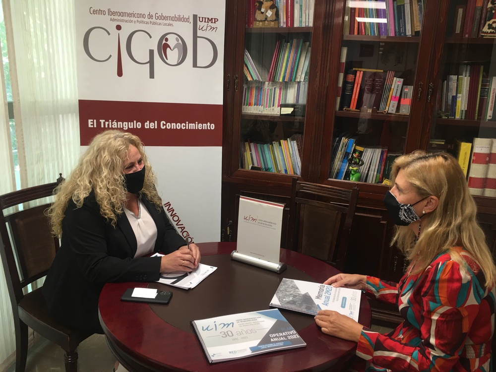 En ese espacio de trabajo compartió con la coordinadora del Congreso UIM, Maribel Gallego, quien detalló los espacios y el selecto grupo de autoridades locales y especialistas en la materia que unirán sus esfuerzos en el marco de este magno evento municipalista, que se celebrará en formato presencial y virtual.