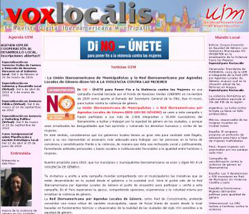 En este sentido, la UIM y la Red de Género antes mencionada han realizado una Edición Especial de la Revista Digital VoxLocalis dedicada a la violencia de género, invitando a todo el municipalismo iberoamericano a unirse a esta campaña mundial.