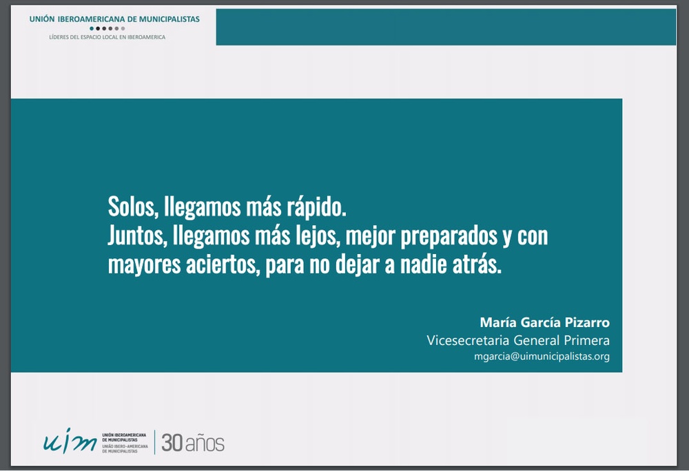 Finalmente María García Pizarro ha indicado que "Debemos avanzar a nuevos compromisos que invitan a nuevos modos colaborativos de articulación" a cuidar los talentos y los voluntariados profesionalizados que impliquen cambios normativos más agiles que consideren a la cooperación como palanca de impulso en contexto con los #ODS"