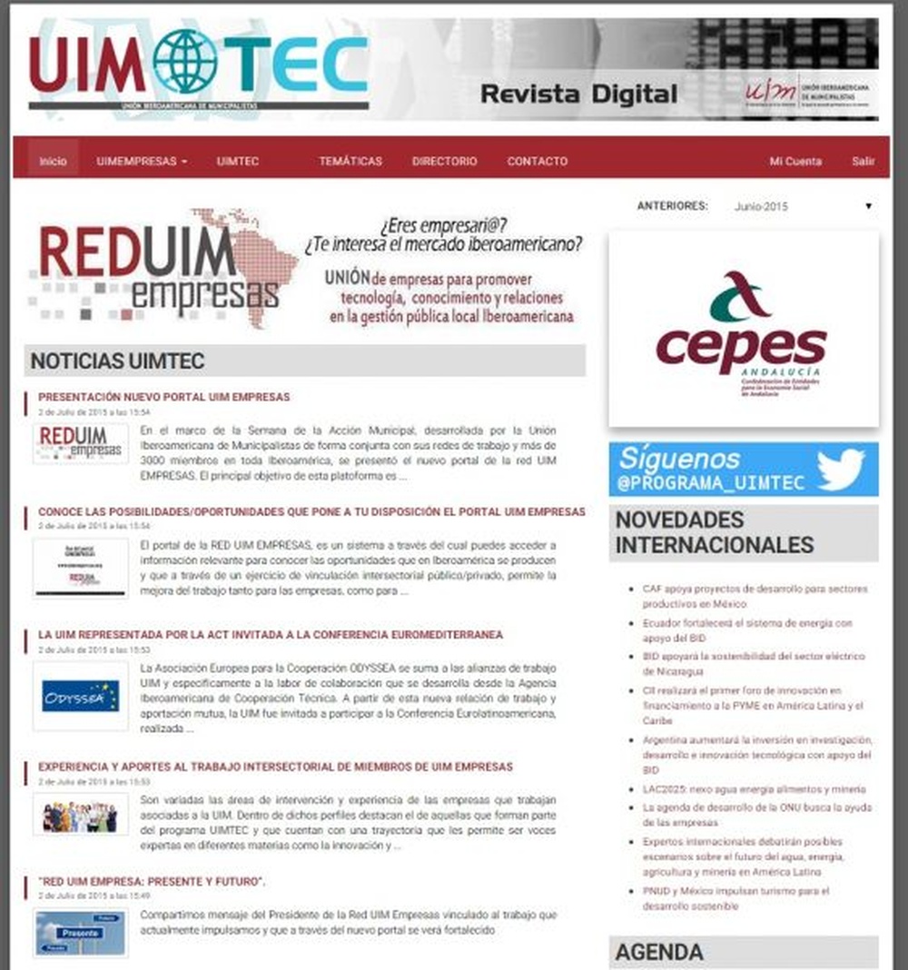 Esta es la portada de la revista digital del programa UIMTEC... te invitamos a leerla, a conocer las empresas que con su dilatada experiencia internacional forman parte del trabajo que en esta materia desarrolla la UIM y que comparten su buen hacer con los organismos públicos de América.