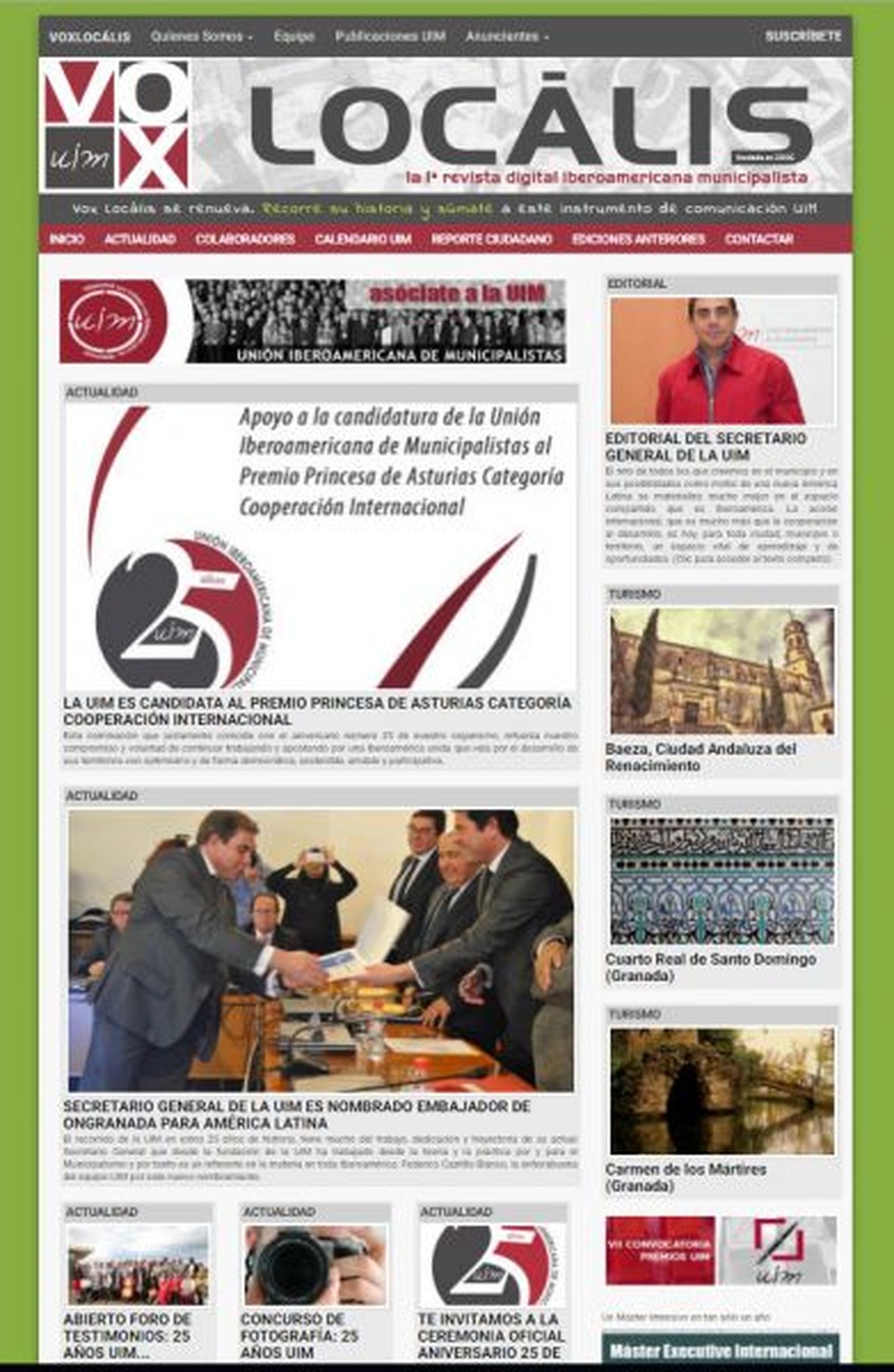 Así lo estamos haciendo y por lo mismo en este mes que conmemoramos los 25 años de la UIM, hemos publicado la edición especial de Vox Locális que con una editorial de Federico Castillo Blanco, Secretario General de la UIM.