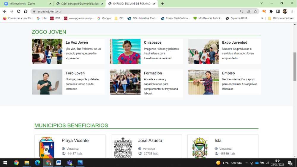 En esta etapa del proyecto, se trabaja en concretar un espacio joven virtual y otro presencial que permita el intercambio y crecimiento colectivo de jóvenes Zapotecas de diez municipios. Financiado por la Unión Europea, el proyecto es liderado por la Unión Iberoamericana de Municipalistas, junto a sus socios locales el Centro Mexicano para el Desarrollo Local y la Municipalidad de Playa Vicente.