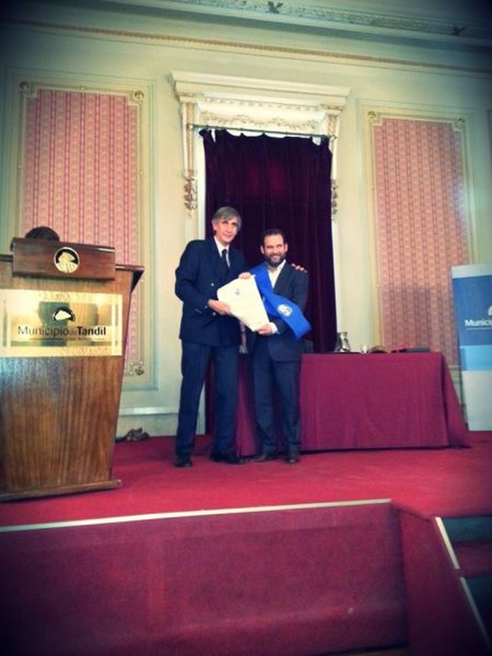 En la imagen superior el Director académico de la actividad, Sergio Pérez Rozzi, hace entrega de su Diploma y Banda a Gastón Morando, Secretario de Economía y Administración de Municipio de Tandil y alumno de la primera edición de esta especialización que en el año 2012 se realizó en Granada (España).