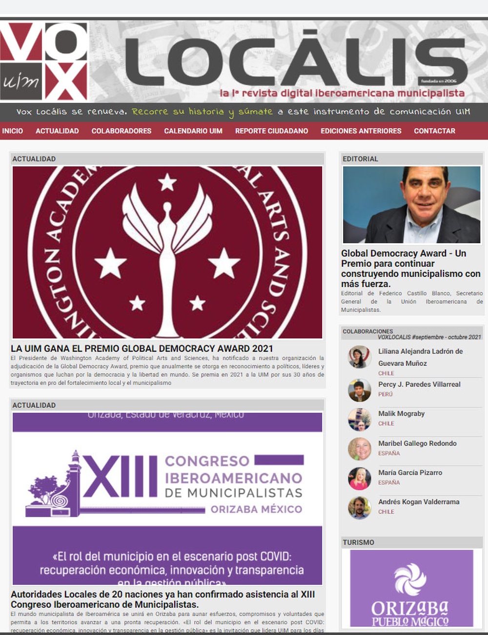 En la edición Nº95 de la revista Vox Locális, compartimos e informamos de la alegría que significa para nuestra organización recibir el premio GLOBAL DEMOCRACY AWARDS 2021, otorgado por la Academia de Washington.