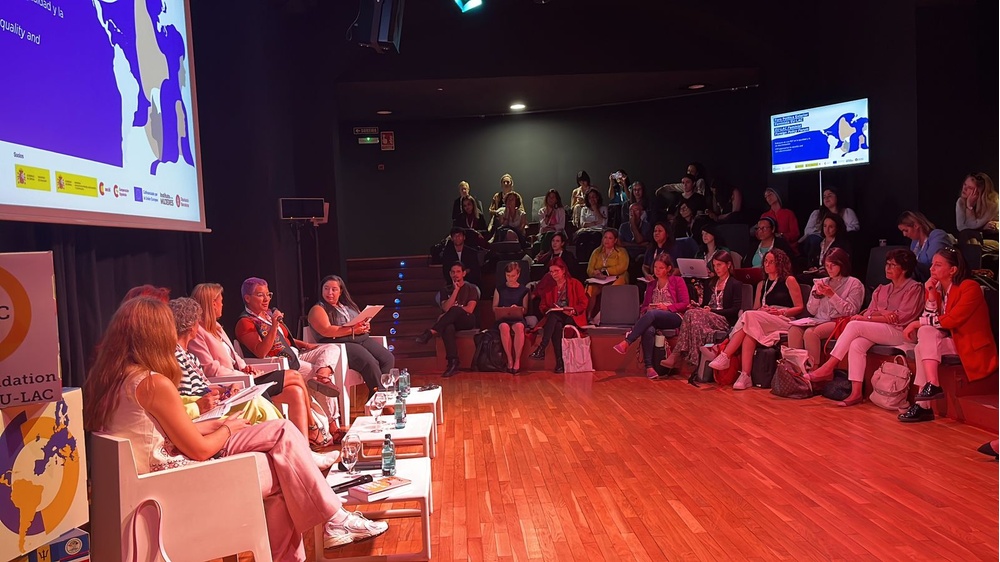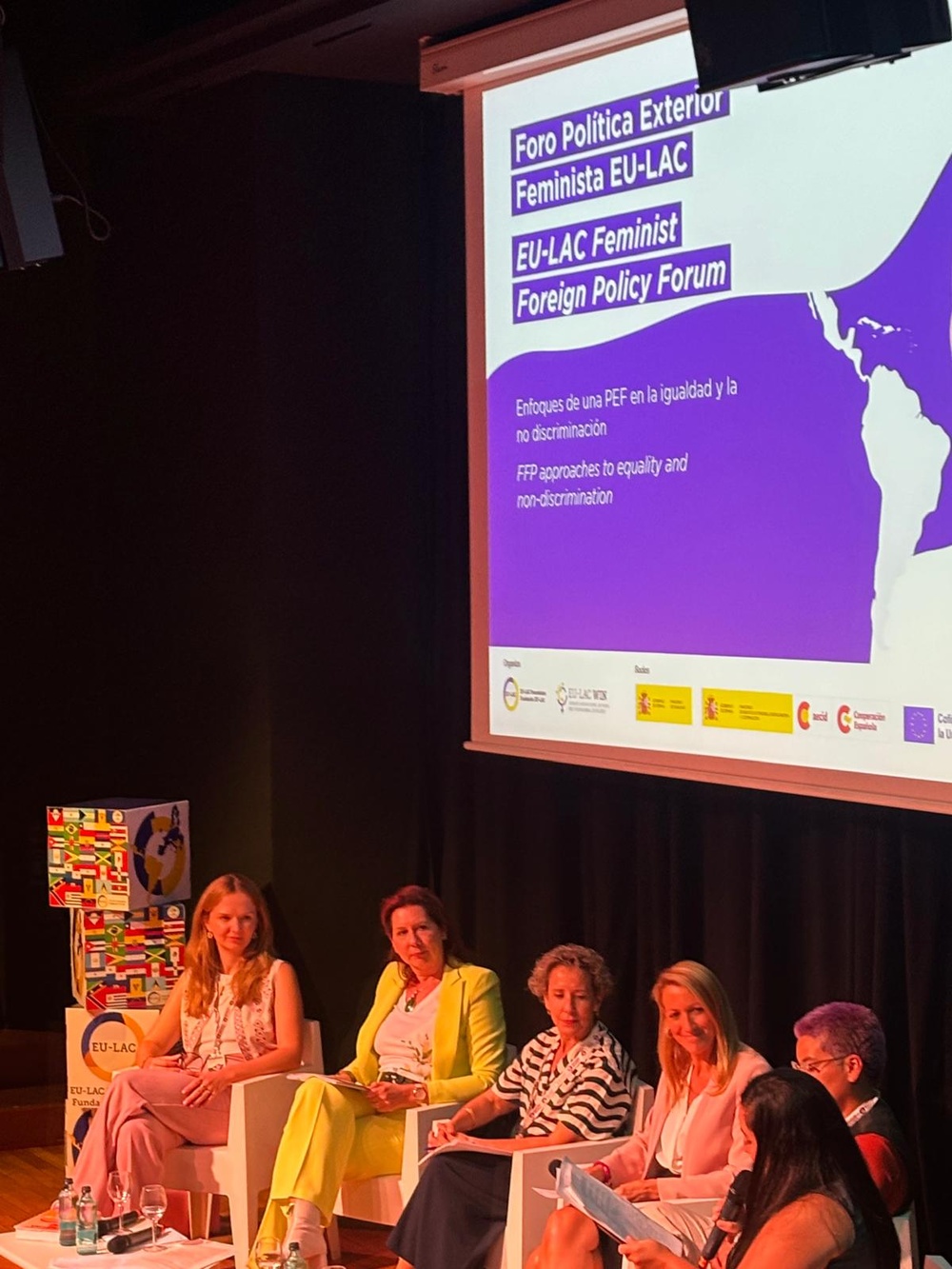 El foro reunió a destacadxs personalidades de Europa, América Latina y el Caribe, incluyendo representantes gubernamentales, de la sociedad civil, organismos internacionales y el ámbito académico, con el objetivo de analizar y avanzar en la implementación de una Política Exterior Feminista (PEF).