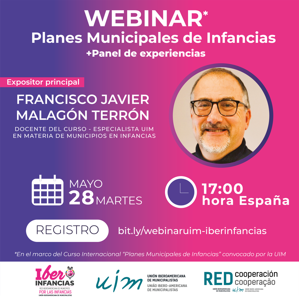 La Red Iberoamericana de Municipios por las Infancias - IberInfancias de la Unión Iberoamericana de Municipalistas, convoca un webinar abierto y gratuito que forma parte del Curso Internacional sobre la temática que imparte el especialista Javier Malagón.