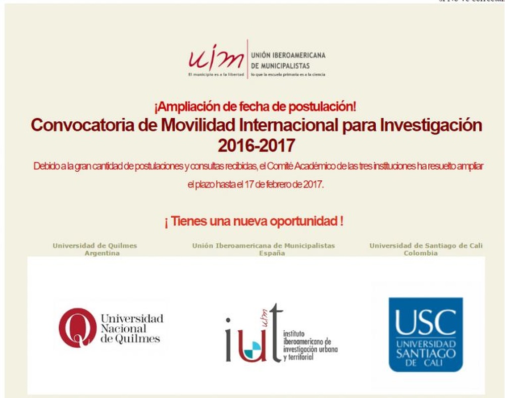 Debido a la gran cantidad de postulaciones y consultas recibidas, el Comité Académico de las tres instituciones ha resuelto ampliar el plazo hasta el 17 de febrero de 2017.