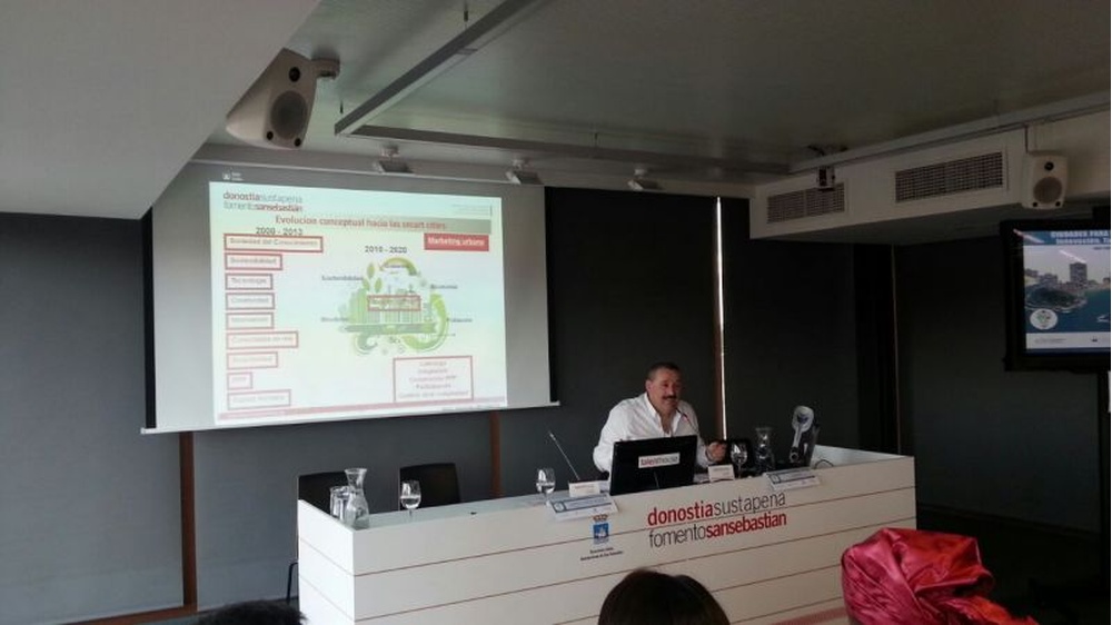 En la imagen el Director de Fomento de San Sebastián expone el trabajo del ayuntamiento a lo/as participantes