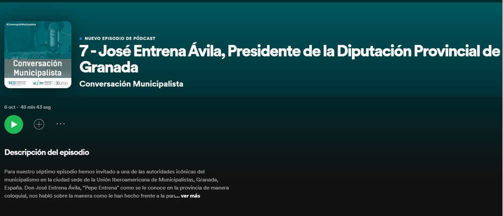 Para nuestro séptimo episodio de "Conversación Municipalista", hemos invitado a una de las autoridades icónicas del municipalismo en la ciudad sede de la Unión Iberoamericana de Municipalistas, Granada, España. Don José Entrena Ávila, “Pepe Entrena” como se le conoce en la provincia de manera coloquial.