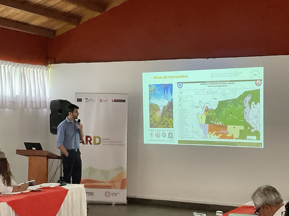 La presentación de experiencia exitosa internacional en gestión compartida de áreas naturales protegidas y ecoturismo, fue presentada por el argentino Pablo Berrozpe, Director Nacional de Conservación de la Administración de Parques Nacionales de la Argentina del Ministerio del Ambiente y Desarrollo Sustentable.