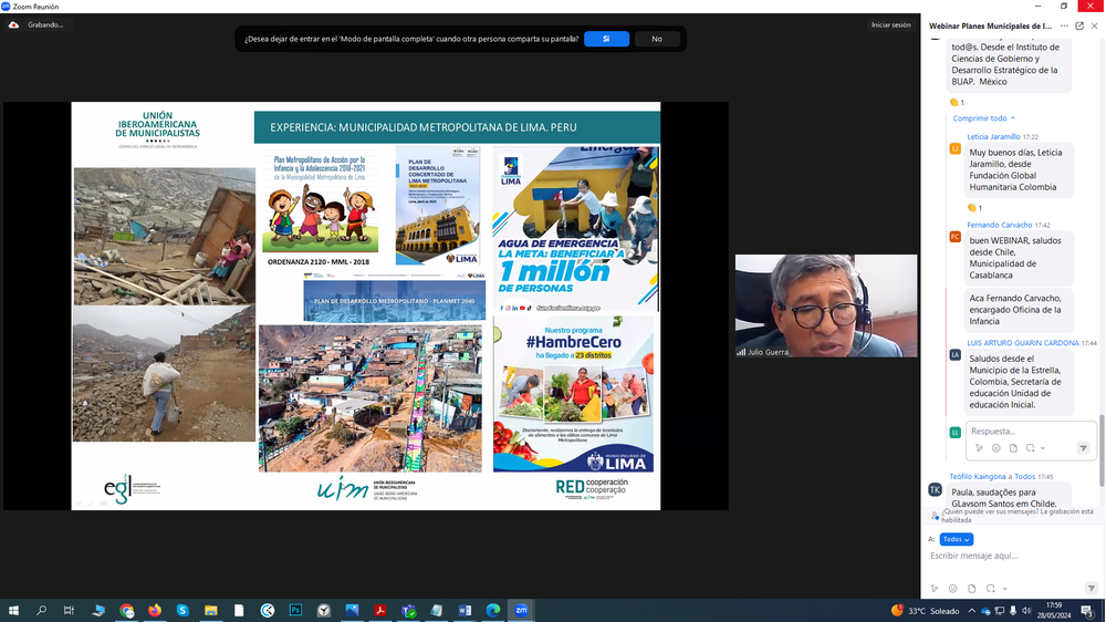 La exposición principal estuvo a cargo de Javier Malagón, profesor de la niversidad Complutense de Madrid, asesor de UNCEF España y especialista de la UIM en municipios e infancias. Durante su intervención, Malagón presentó un análisis exhaustivo sobre los desafíos y oportunidades que enfrentan los municipios iberoamericanos en la implementación de políticas públicas enfocadas en la niñez.
