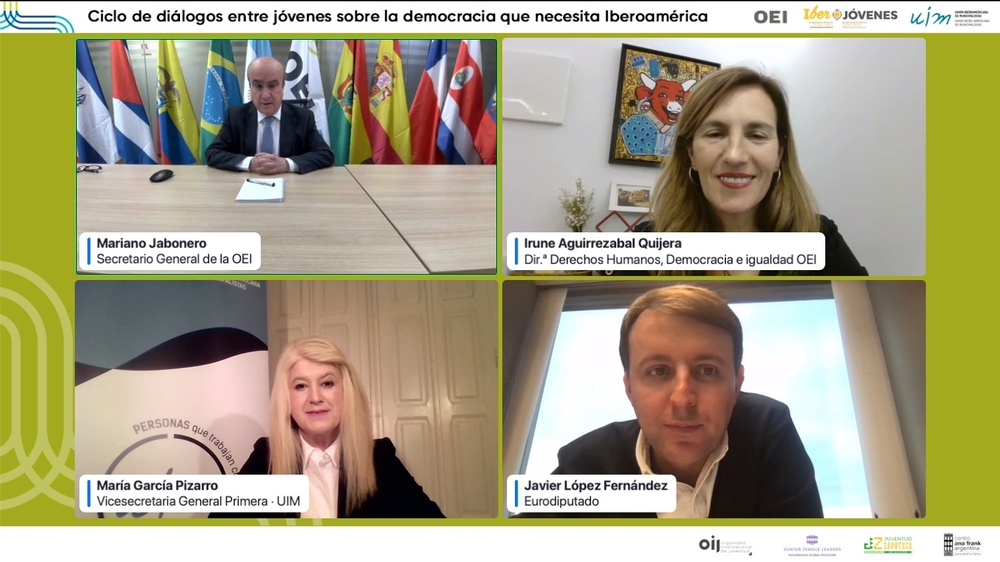 El Diálogo sobre Democracia y Juventud, contó con la participación de Irune Aguirrezabal, responsable del programa Iberoamericano en derechos humanos, democracia e igualdad de OEI.