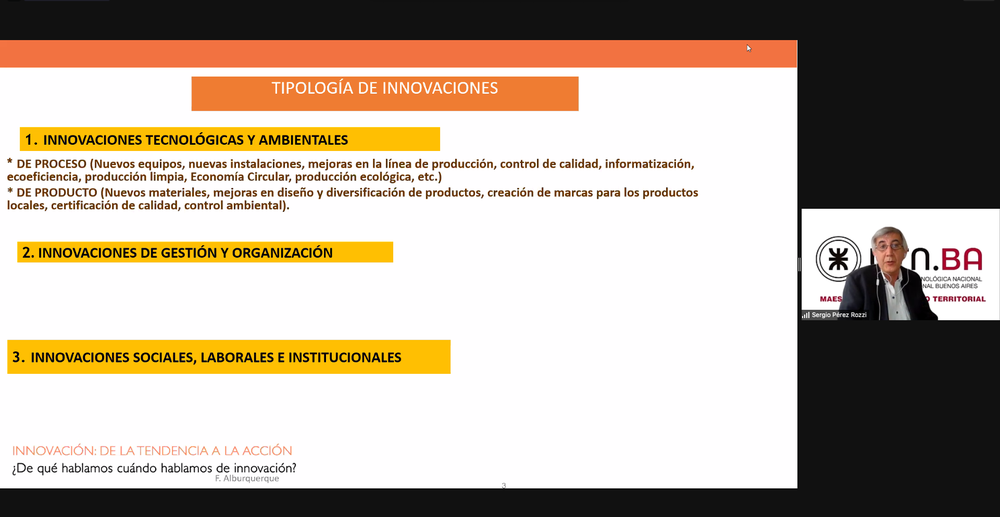 Posteriormente se desarrolló el 1er Seminario, que bajo el título "La innovación en relación con el desarrollo territorial, nuevos aprendizajes desde el abordaje horizontal", contó con las intervenciones del experto argentino en la materia de la UTN Sr. Sergio Pérez Rozzi quien dictó conferencia magistral, analizando la innovación como concepto y proceso ligado a los territorios y a los agentes presentes en el mismo.