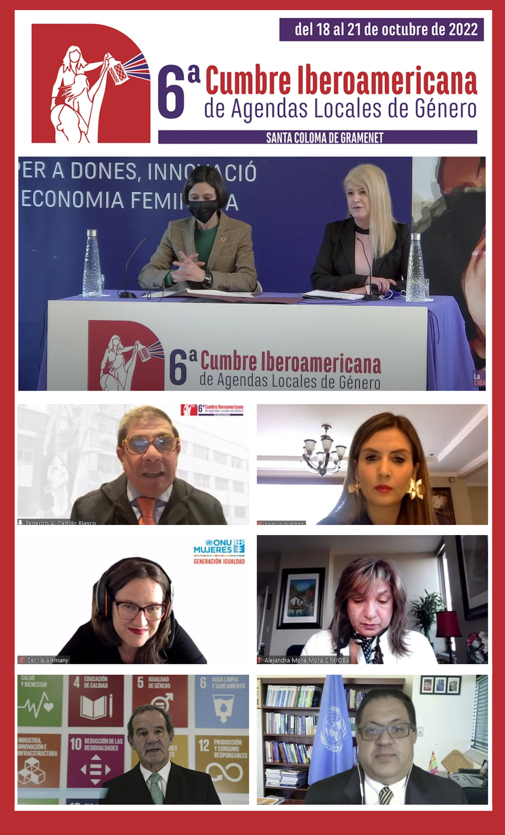 Así mismo se han sumado a la ceremonia, las máximas autoridades de las principales agencias internacionales que trabajan por el avance de las mujeres en el mundo, conectadas desde sus naciones para apoyar esta iniciativa y comprometer su trabajo en calidad de coorganizadores de la Cumbre Iberoamericana de Agendas Locales de Género.