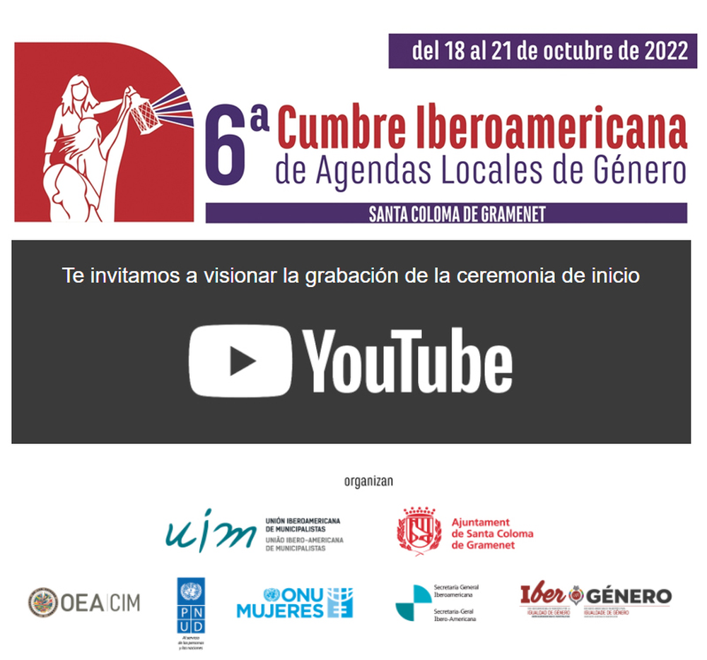 El evento estará liderado por la Unión Iberoamericana de Municipalistas y el Ayuntamiento de Santa Coloma de Gramenet y coorganizado por ONU Mujeres, la Secretaría General Iberoamericana (SEGIB), el PNUD y la Comisión Interamericana de las Mujeres de la Organización de Estados Americanos (CIM-OEA).