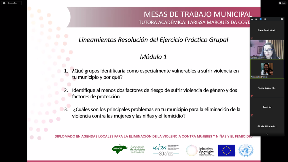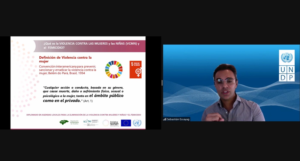 Con la clase teórica sincrónica "Generalidades sobre el Género, la interseccionalidad, la perspectiva de género y la violencia contra las mujeres y las niñas y el femicidio", han dado inicio las actividades académicas programadas en el Diplomado Agendas Locales para la Eliminación de la Violencia contra Mujeres y Niñas y el Femicidio, convocado gracias al trabajo en alianza de la Unión Iberoamericana de Municipalistas, el Programa de Naciones Unidas para el Desarrollo en Honduras (PNUD Honduras) y la Asociación de Municipios de Honduras, en el marco de la Iniciativa Spotlight, una alianza global entre la Unión Europea y las Naciones Unidas.
