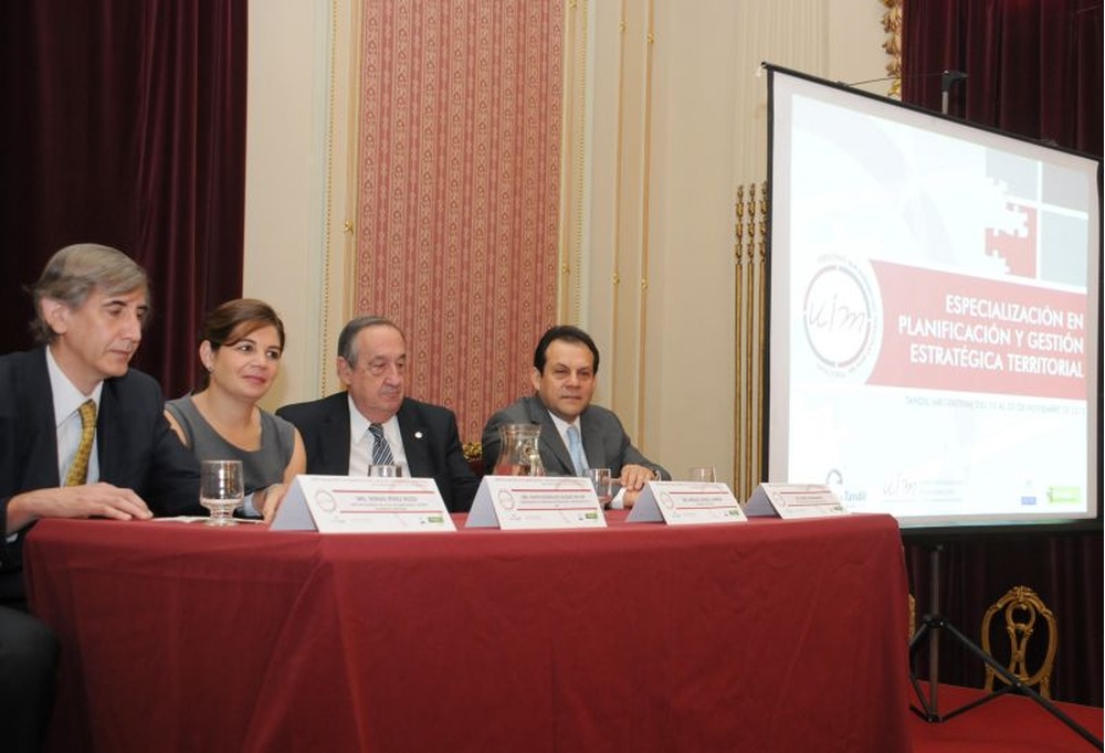 El acto de apertura fue encabezado por el intendente Miguel Lunghi, la Coordinadora de Programas de Formación y Capacitación de la UIM, Marta Rodríguez Vázquez del Rey, el Jefe del Area de Capacitación del ILPES/CEPAL, Dr. René Hernández, y el Director Académico del curso, Dr. Sergio Pérez Rozzi.