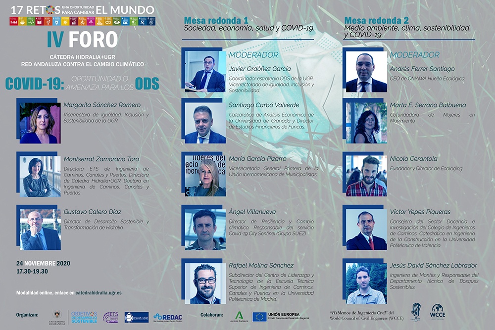 Evento en línea – Inscripciones en http://catedrahidralia.ugr.es/difusion/iv-foro-de-la-catedra-hidralia-ugr-covid-19-oportunidad-o-amenaza-para-los-ods/