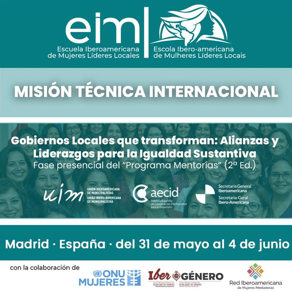 Esta Misión Técnica forma parte de la Escuela Iberoamericana de Mujeres Líderes Locales, un programa integral impulsado por la UIM y la SEGIB, con el apoyo de ONU Mujeres, la Red Iberoamericana de Municipios por la Igualdad de Género – IberGénero UIM y la Red Iberoamericana de Mujeres Mediadoras.