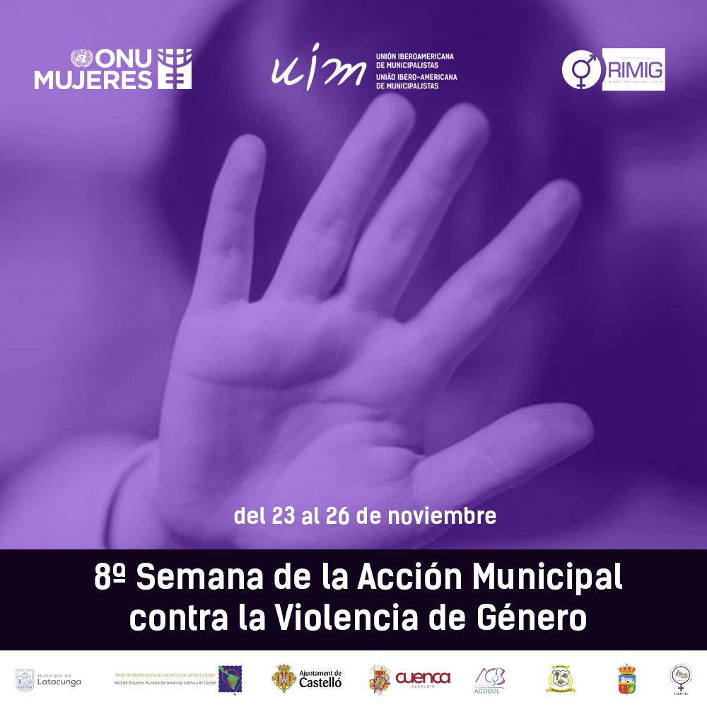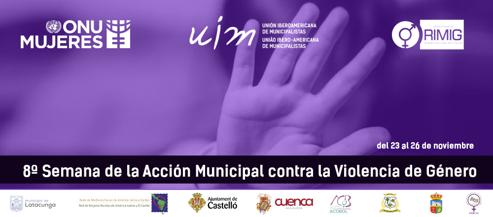 La Oficina Regional de ONU Mujeres para América Latina y el Caribe junto a la Unión Iberoamericana de Municipalistas a través de la Red Iberoamericana de Municipios por la Igualdad de Género (RIMIG), en línea al compromiso por combatir la violencia de género desde los espacios locales, convocan la 8ª edición de la SEMANA DE LA ACCIÓN MUNICIPAL CONTRA LA VIOLENCIA DE GÉNERO con motivo de la conmemoración del Día Internacional de la Eliminación de la Violencia contra la Mujer.