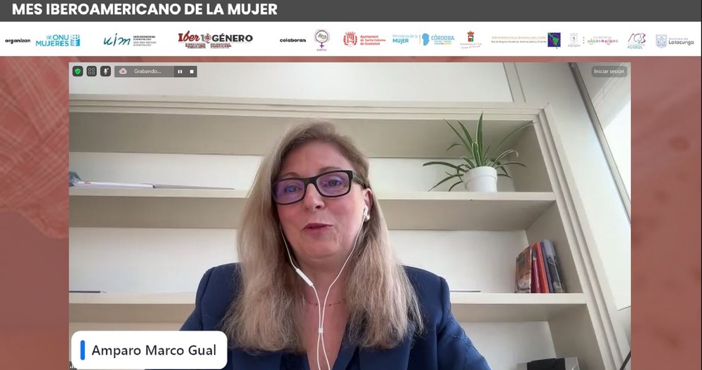 Seguidamente tomó la palabra la Vicepresidenta de la Red IBERGÉNERO de la UIM y Senadora del Gobierno de España, Amparo Marco. La autoridad exhortó a un compromiso de tod@s para avanzar juntas en la erradicación de la “Violencia hacia mujeres en la política” y comentó que es necesaria la unión y que no nos dejemos vencer.