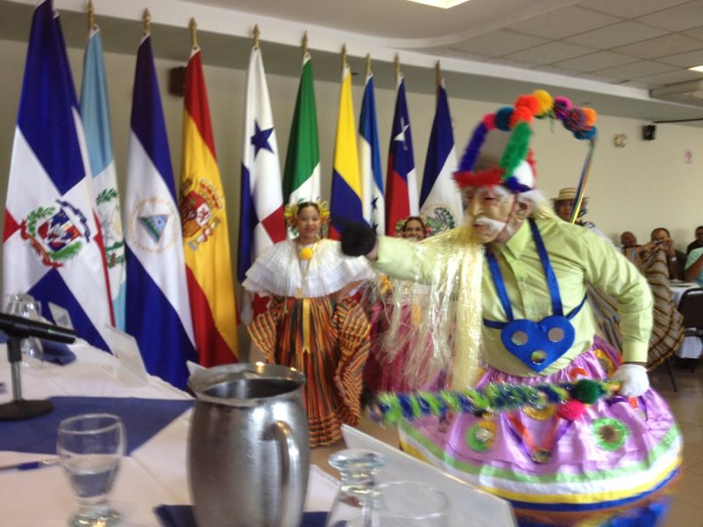 del curso y a la izquierda baile ceremonial típico de Panamá.