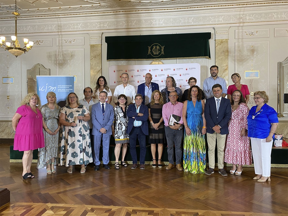 En la imagen la foto de familia de las autoridades asistentes a la Reunión anual de la Red de Cooperación Internacional al Desarrollo (RUDICEL) de la Unión Iberoamericana de Municipalistas, celebrada en Almería.