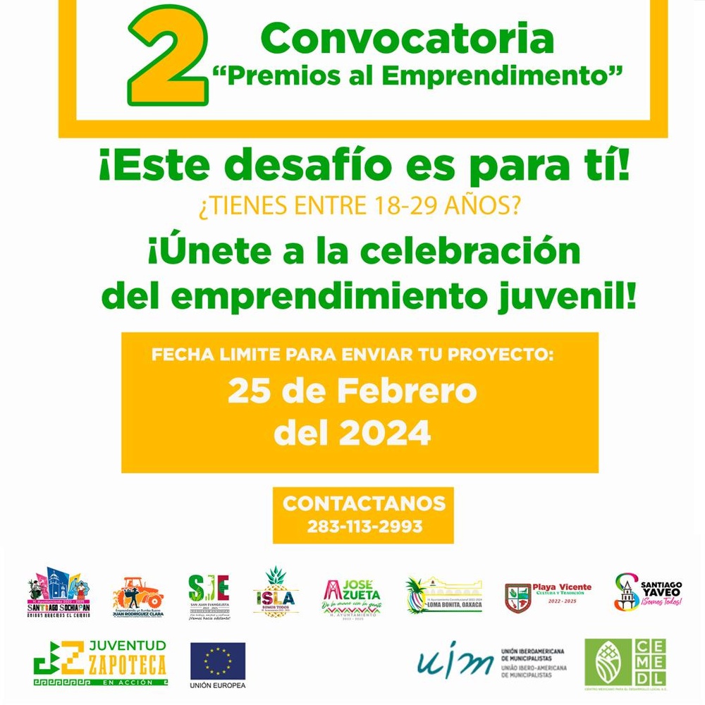 Fomentar el espíritu emprendedor, promover el desarrollo de proyectos y propuestas emprendedoras innovadoras y sostenibles, entre los y las jóvenes zapotecas, para brindarles apoyo en el inicio o mejora de sus emprendimientos, es el objetivo de este llamado enmarcado en el trabajo desarrollado en el Proyecto Juventud Zapoteca, financiado por la Unión Europea.