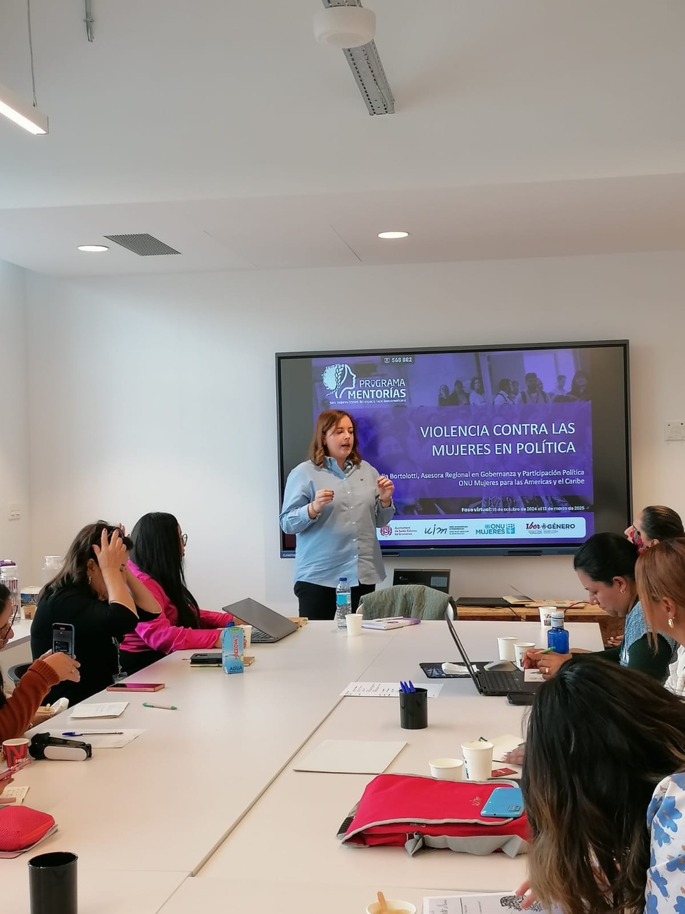 Posteriormente, las asistentes participaron en el taller Estrategias para el abordaje integral de la violencia contra mujeres en política, facilitado por Giulia Bortolotti, de ONU Mujeres, y Natalia Calero. Este espacio permitió compartir experiencias y reflexionar sobre medidas para combatir la violencia política, incluso en entornos digitales.