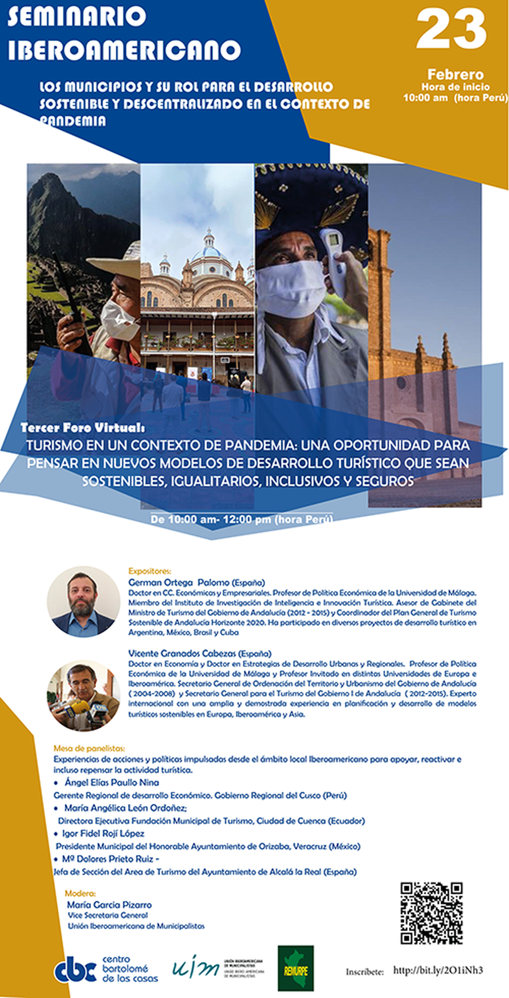 El espacio será presentado por Carlos Herz. Director General Centro Regional de Estudios Bartolomé De las Casas y estará moderado por María García Pizarro. Vicesecretaria General Primera de la Unión Iberoamericana de Municipalistas.
