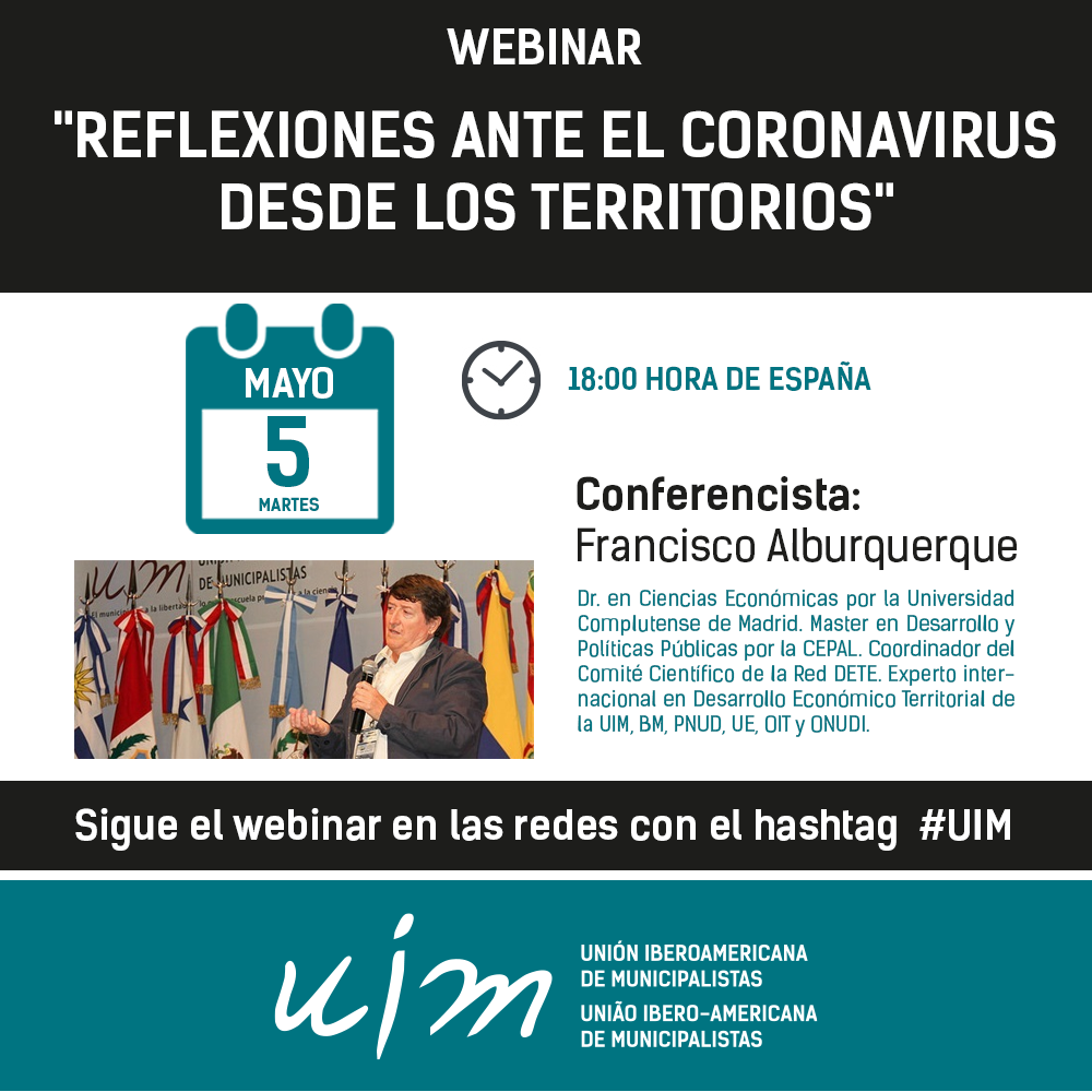 Este 5 de mayo, realizamos el lanzamiento de la Escuela Abierta de Gobierno Local - MOOCUIM y lo hacemos impartiendo la conferencia “Reflexiones ante el Coronavirus desde los Territorios", que impartirá el experto español en Desarrollo Local, Francisco Alburquerque.