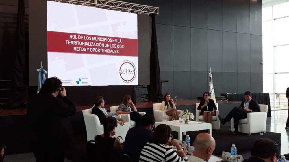 Durante su intervención, la representante de la UIM ha referido a los retos y oportunidades que la Agenda 2030 y los ODS significan para las agendas locales y la urgencia de considerar que sin el aporte de los municipios no se lograrán las metas de esta agenda internacional.