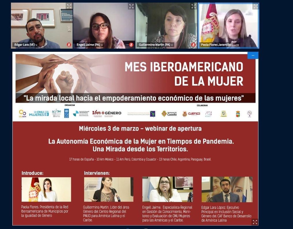 La actividad de apertura se desarrolló con la videoconferencia denominada "La Autonomía Económica de la Mujer en tiempos de Pandemia: Una mirada desde los Territorios", convocada por la Unión Iberoamericana de Municipalistas, de forma conjunta con la Oficina Regional de ONU Mujeres para América Latina y El Caribe, el Programa de las Naciones Unidas para el Desarrollo y el Banco Banco de Desarrollo de América Latina, que reflexionó sobre el rol del nivel local para una recuperación socioeconómica que no deje a nadie atrás, a través de un diálogo moderado por la Red Iberoamericana de Municipios por la Igualdad de Género.