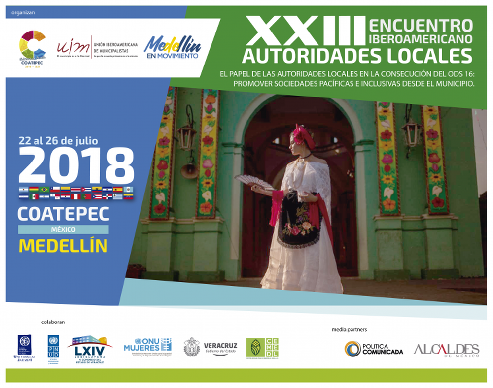 Del 22 al 26 de julio, la Unión Iberoamericana de Municipalistas, desarrollará el XXIII Encuentro Iberoamericano de Autoridades Locales, bajo la temática "El papel de las Autoridades Locales en la consecución del ODS 16: Promover Sociedades Pacíficas e Inclusivas desde el Municipio". El encuentro internacional que será acogido por las ciudades mexicanas del Estado de Veracruz Medellín de Bravo y Coatepec, reunirá a Alcaldes/as, Concejales/as, Directivos/as Públicos, y autoridades en general, provenientes de más de 23 naciones de Iberoamérica.