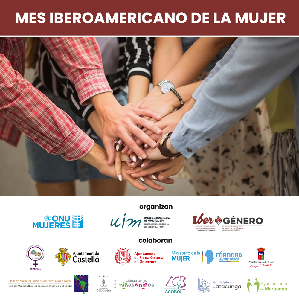Con el objetivo de unir al municipalismo de la región que trabaja por el avance de las mujeres, la Red Iberoamericana de Municipios por la Igualdad de Género, realiza por tercer año consecutivo, el Mes Iberoamericano de la Mujer. La iniciativa busca aunar los esfuerzos que desde los territorios se realizan para alcanzar la igualdad sustantiva.