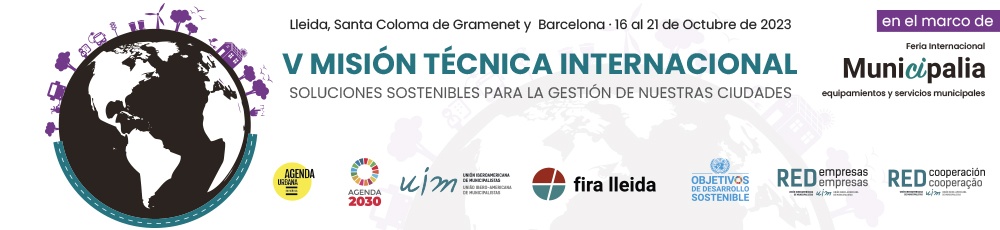 La V Edición de Misión Técnica Internacional Soluciones Sostenibles para la Gestión de Nuestras Ciudades, se enmarca como resultado del logro de objetivos comunes, alcanzados gracias al acuerdo institucional que respaldó el exitoso trabajo desarrollado entre la Fira de Lleida y la Unión Iberoamericana de Municipalistas desde la primera edición de esta Misión Técnica, cuyo propósito era y es acercar a los municipios de América Latina distintas soluciones a fin de optimizar su gestión municipal, y que en esta oportunidad se les seguirá brindando en el marco de la 22ª edición de la Feria bienal Municipalia 2023.